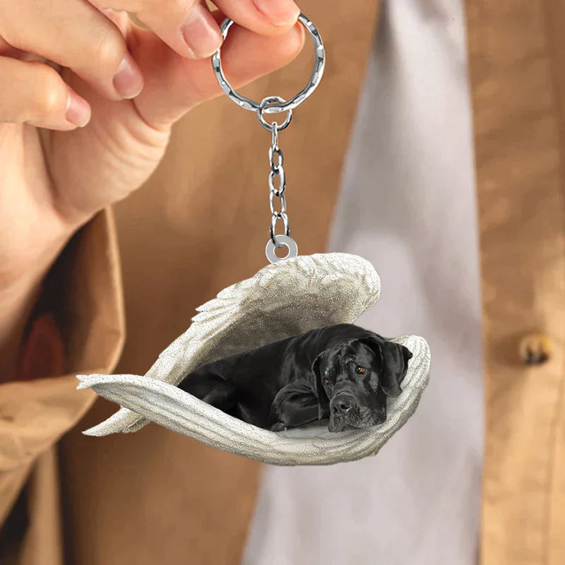 Sleeping Angel Acrylic Keychain Black Great Dane