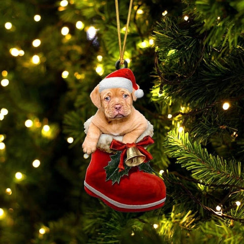 Dogue De Bordeaux In Santa Boot Christmas Hanging Ornament SB170
