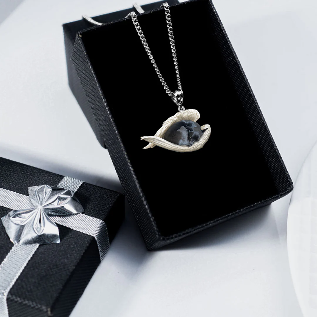 Schipperke Sleeping Angel Stainless Steel Necklace SN142