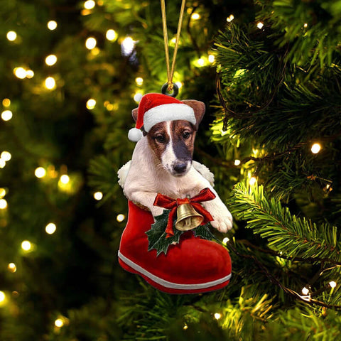 Smooth Fox Terrier In Santa Boot Christmas Hanging Ornament SB210