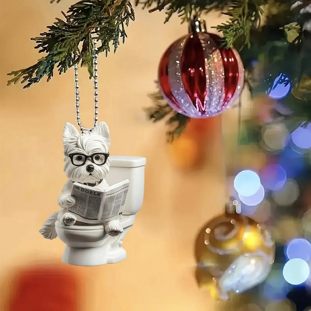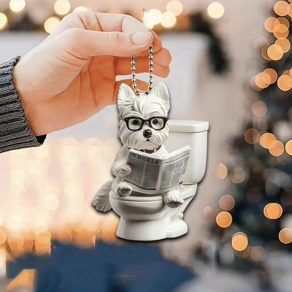 Designed for pet lovers with a sense of humor, this Dog Sitting On Toilet Ornament is perfect for hanging on your Christmas tree, car rearview mirror, desk, or anywhere a laugh is needed. It also makes a great gift for friends, family, or anyone who loves dogs and quirky decor.