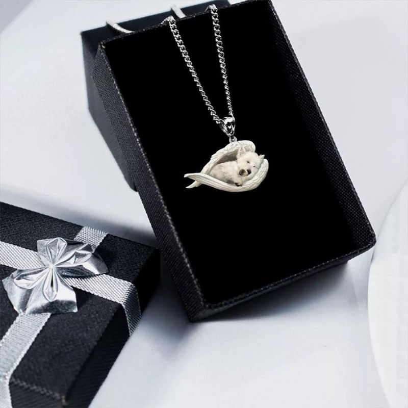 West Highland White Terrier Sleeping Angel Stainless Steel Necklace SN002